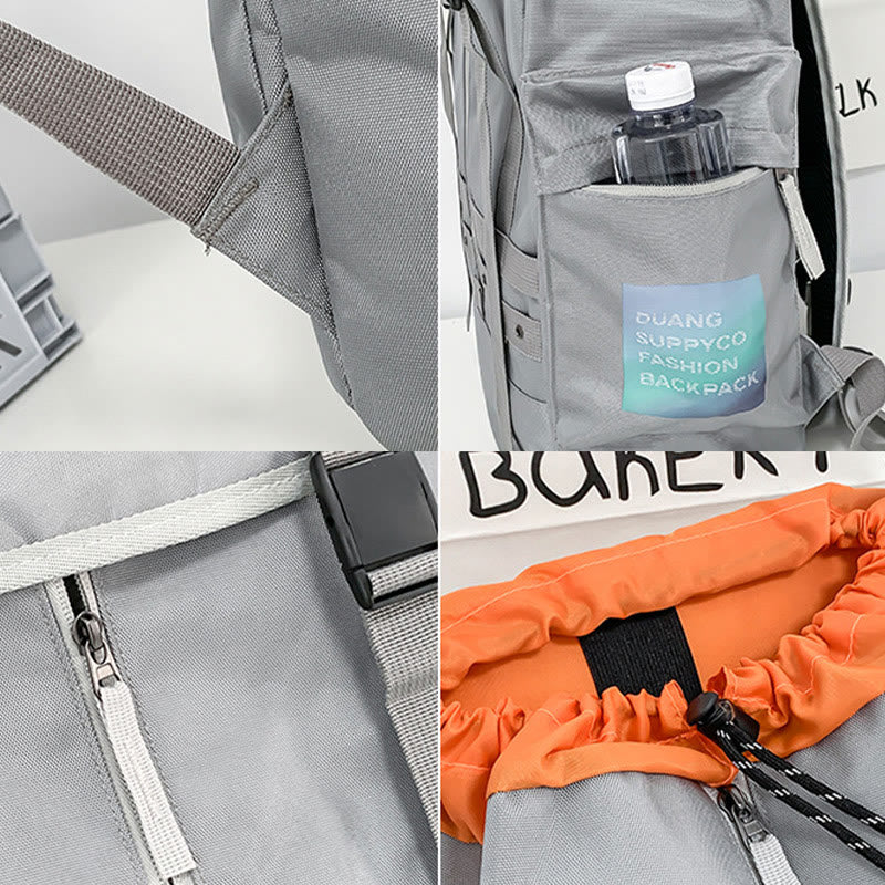 Interne Struktur: 1 Haupttasche, 2 Innenfächer, 1 obere Reißverschlusstasche, 2 Seitentaschen