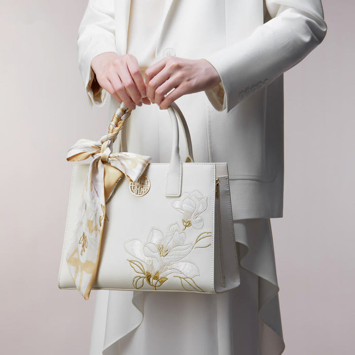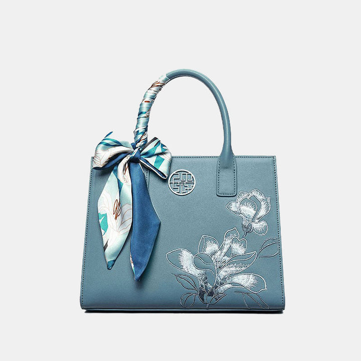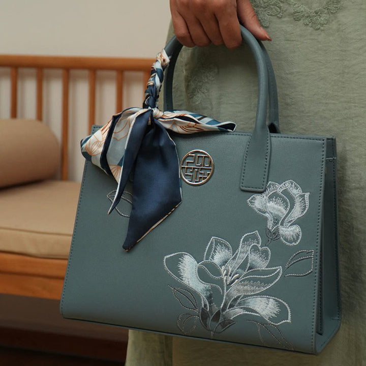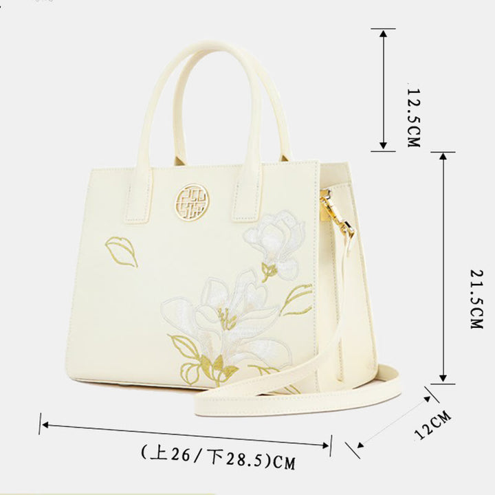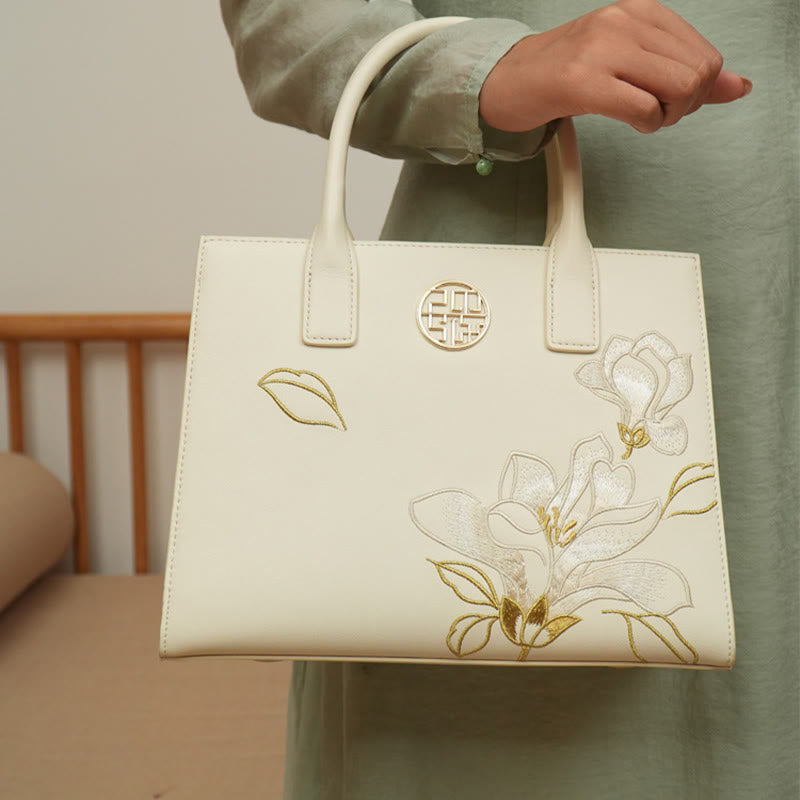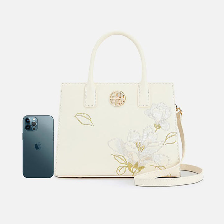 Große Tragetasche mit Blumenstickerei und Griff oben