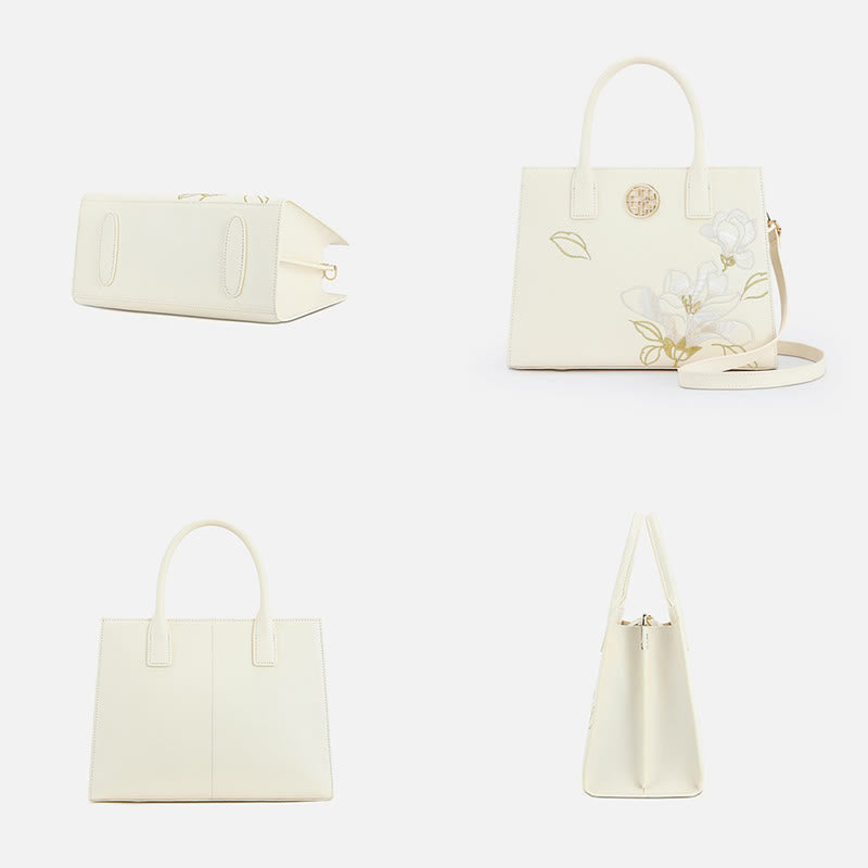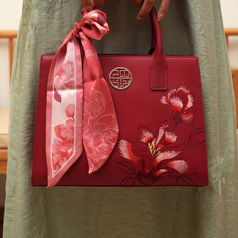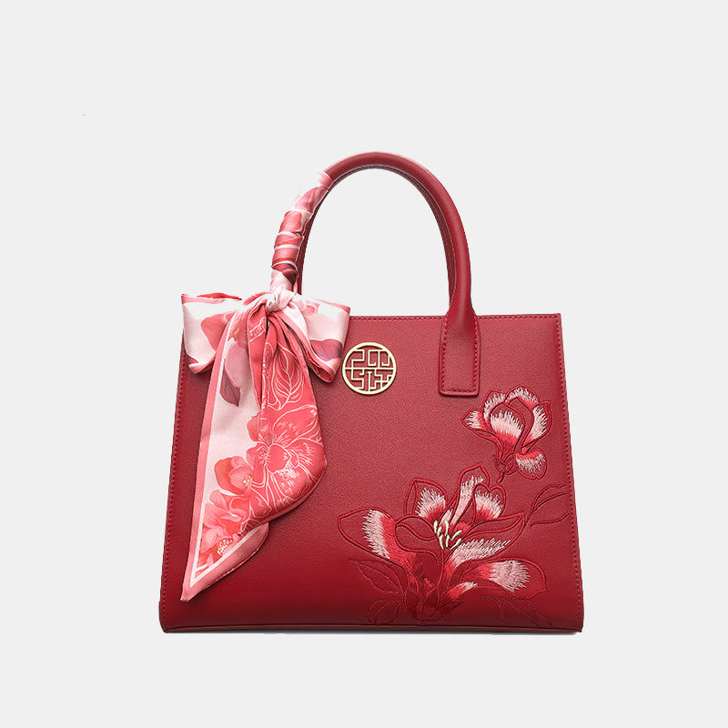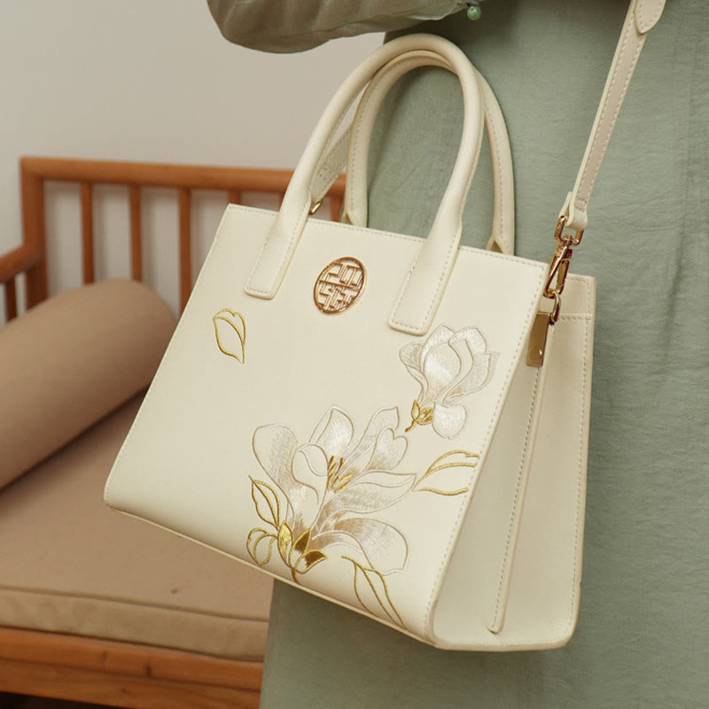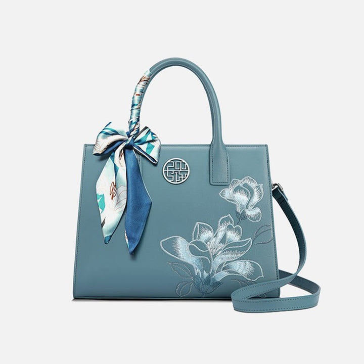 Große Tragetasche mit Blumenstickerei und Griff oben