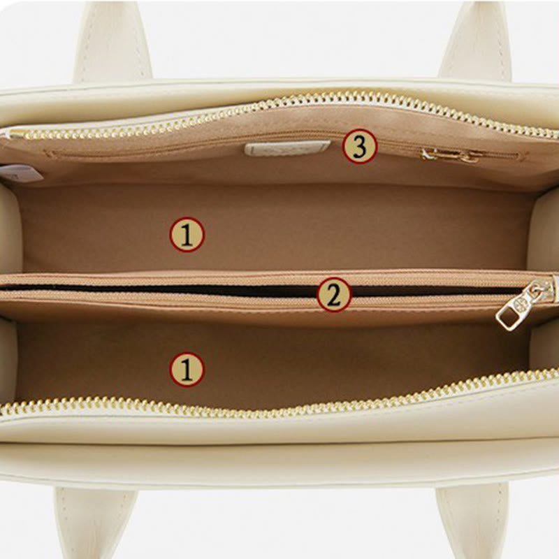 Interne Struktur: 1 Haupttasche, 2 Innenfächer, 2 Innentaschen mit Reißverschluss, 1 aufgesetzte Innentasche