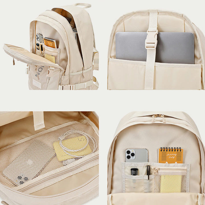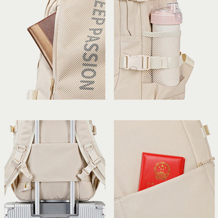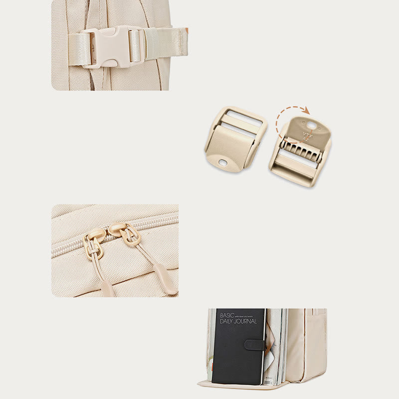 Innere Struktur: 1 Hauptfach, 1 Innenfach für Laptop, 1 Innen-Reißverschlussfach, 2 Seitentaschen, 3 Vordertaschen, Innen-Patch-Tasche, 1 Rückentasche