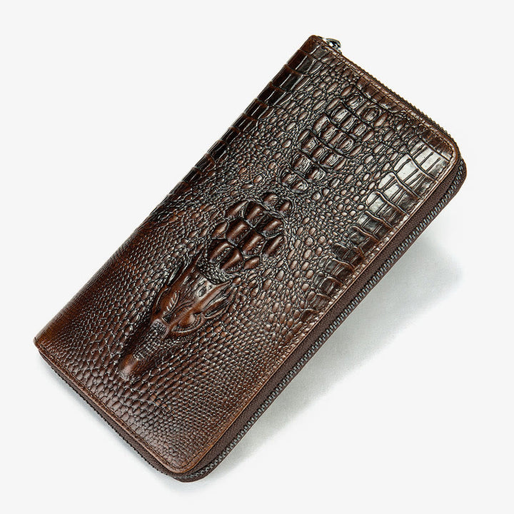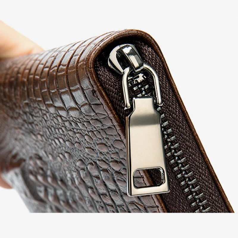 Herren Krokodil Print Brieftasche Business Echtes Leder Lange Geldbörse
