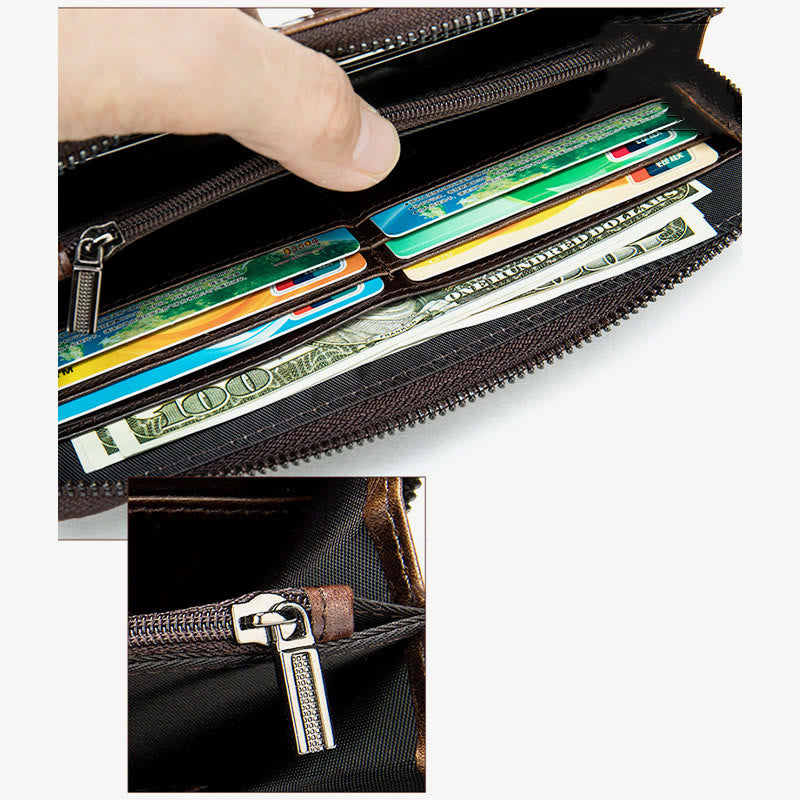 Interne Struktur: 3 Geldscheinfächer, 1 Innenfach mit Reißverschluss, 1 Handyfach, 12 Kartenfächer