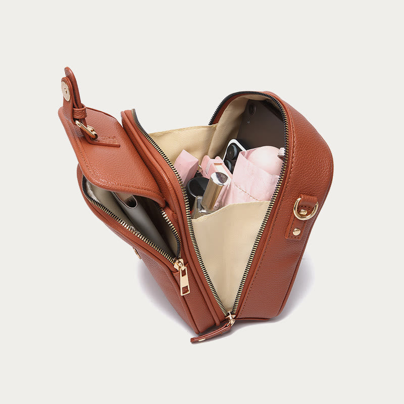 Kleine trendige Umhängetasche für Damen aus veganem Leder mit mehreren Fächern zur Aufbewahrung