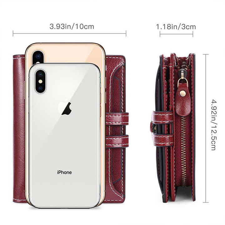 Kompakte Geldbörse für Damen aus echtem Leder mit RFID-Schutz