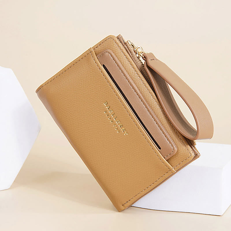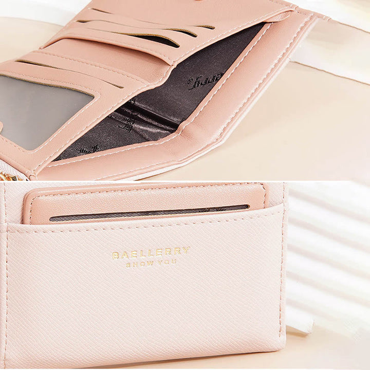 Kompakte, zweifach faltbare Geldbörse aus Kunstleder für Damen mit zusätzlichem Kartenhalter