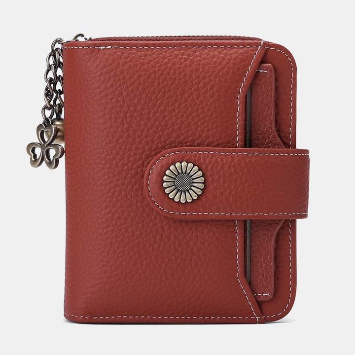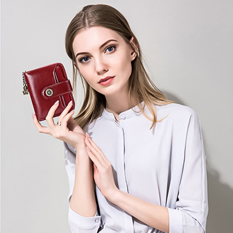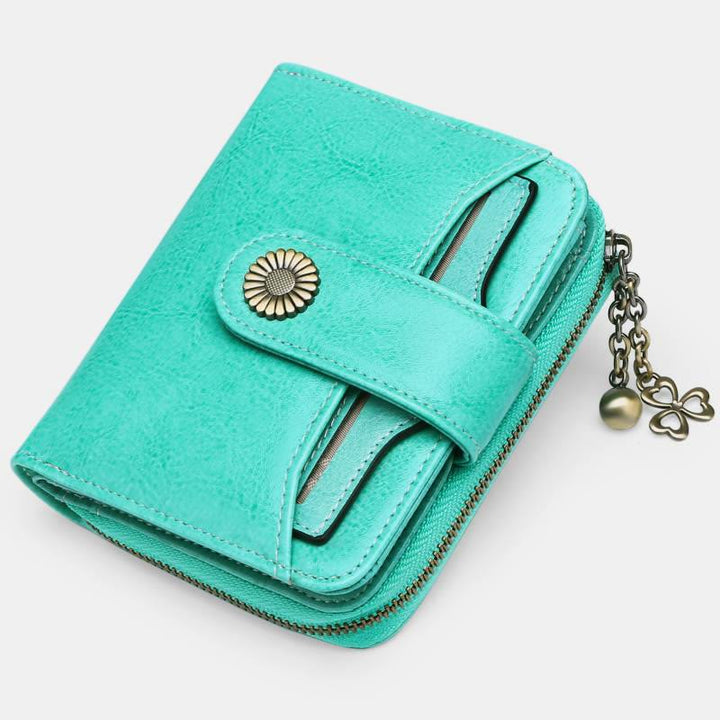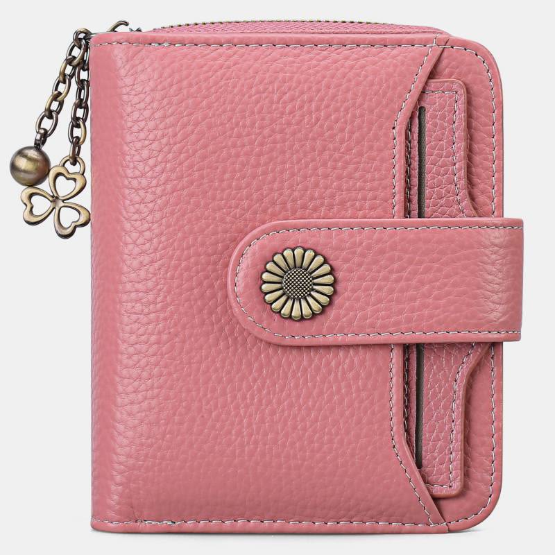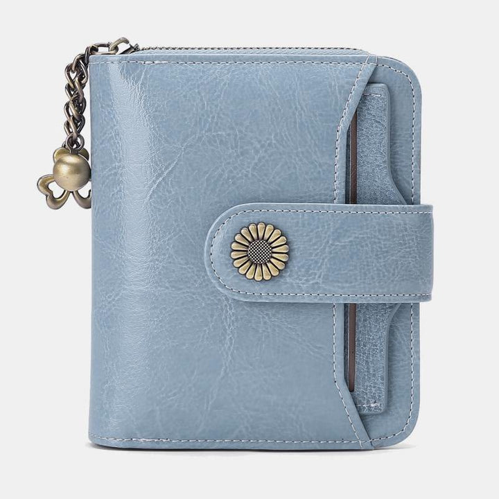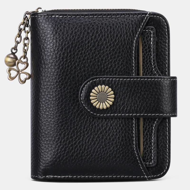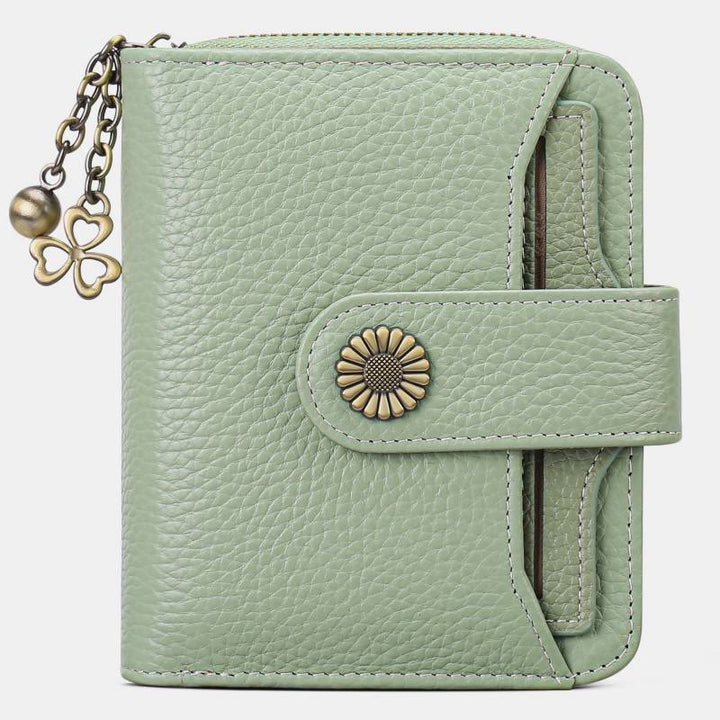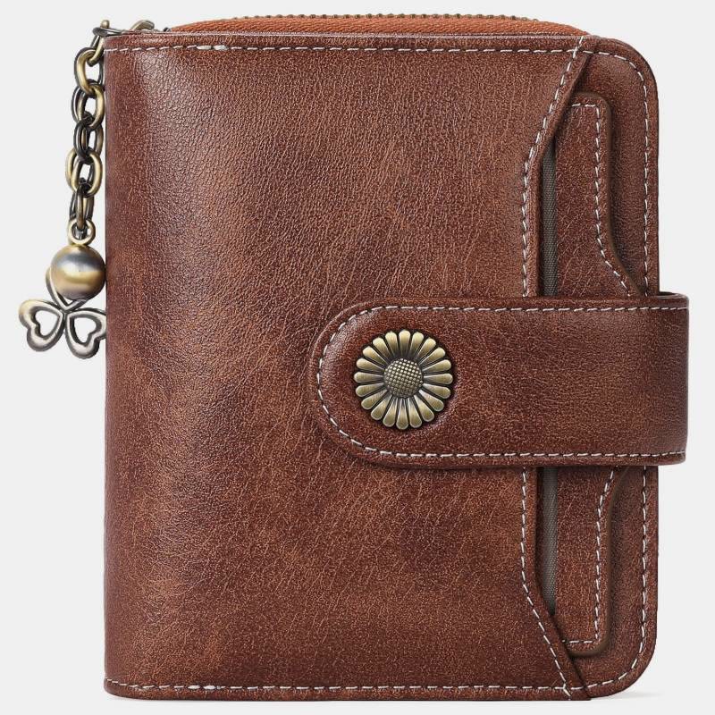 Kompakte, zweifach faltbare Lederbrieftasche mit RFID-Blockierung und abnehmbarem Kartenhalter
