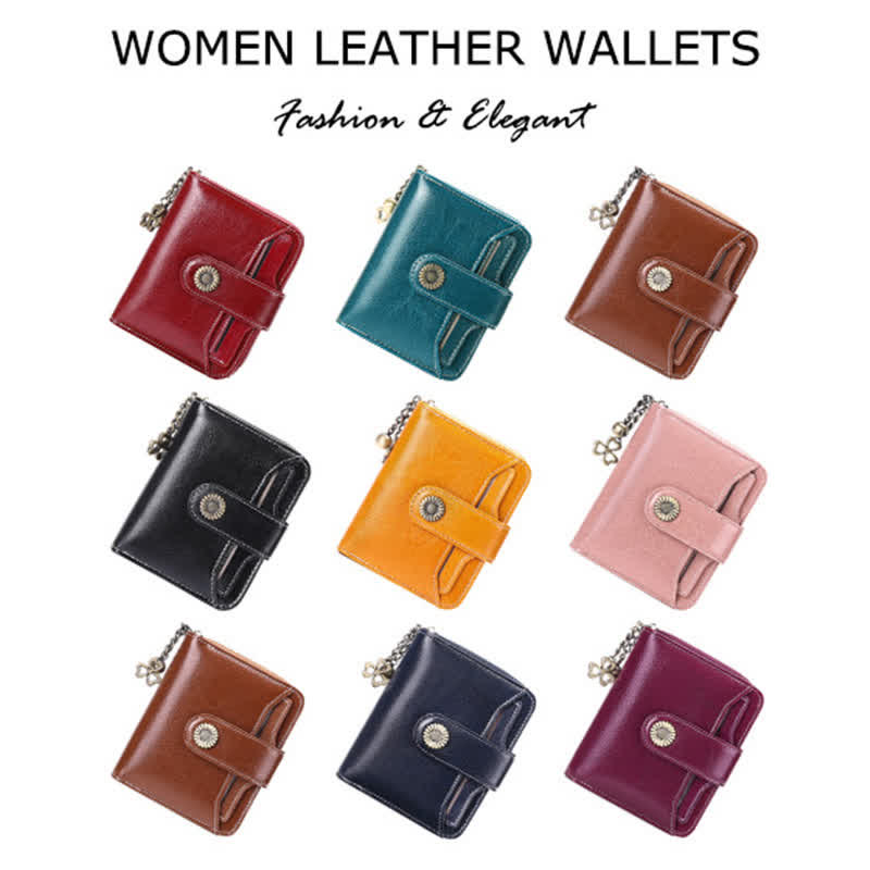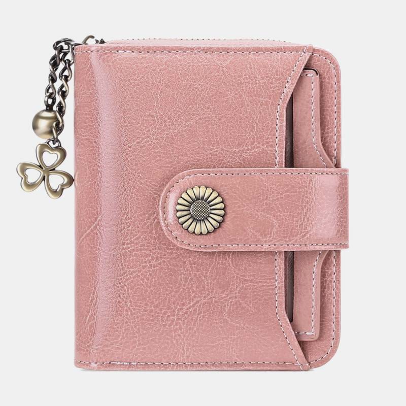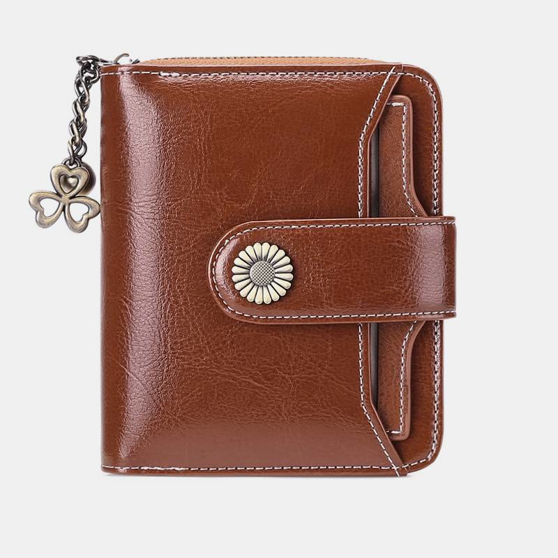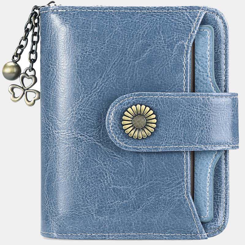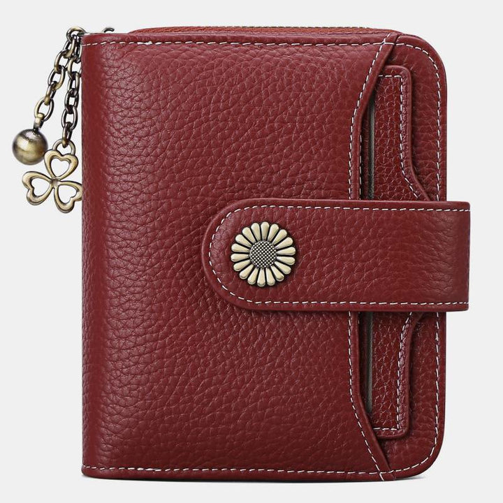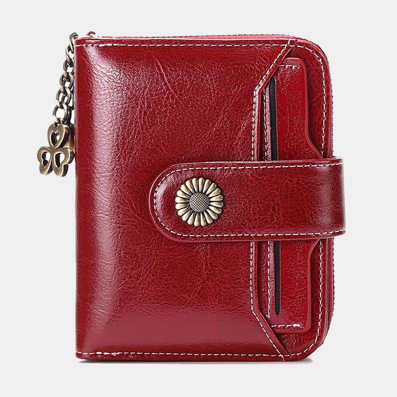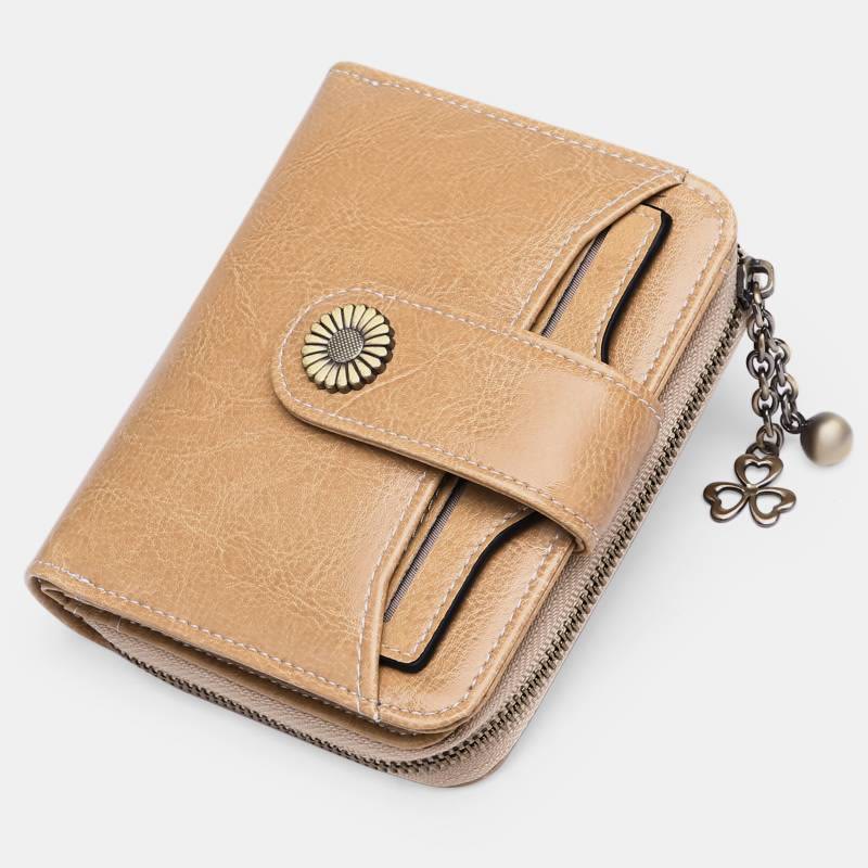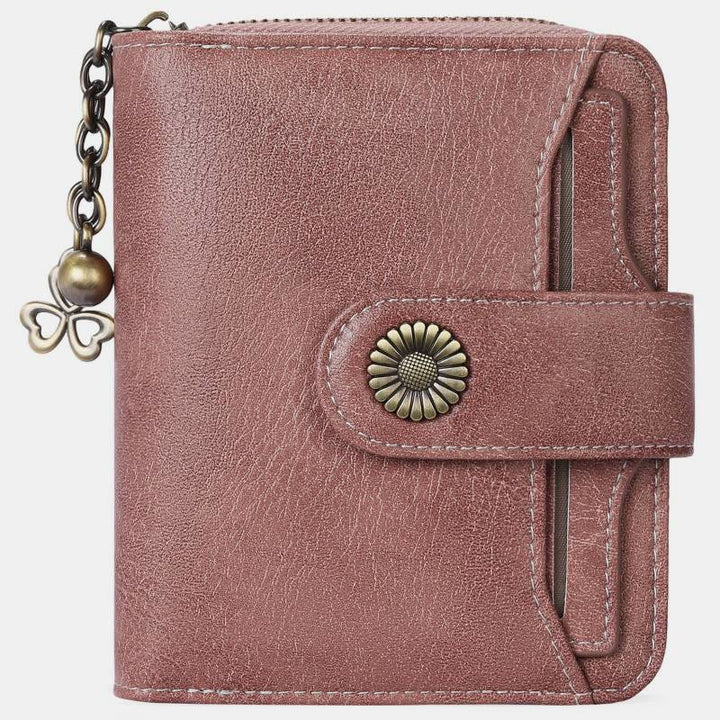 Kompakte, zweifach faltbare Lederbrieftasche mit RFID-Blockierung und abnehmbarem Kartenhalter
