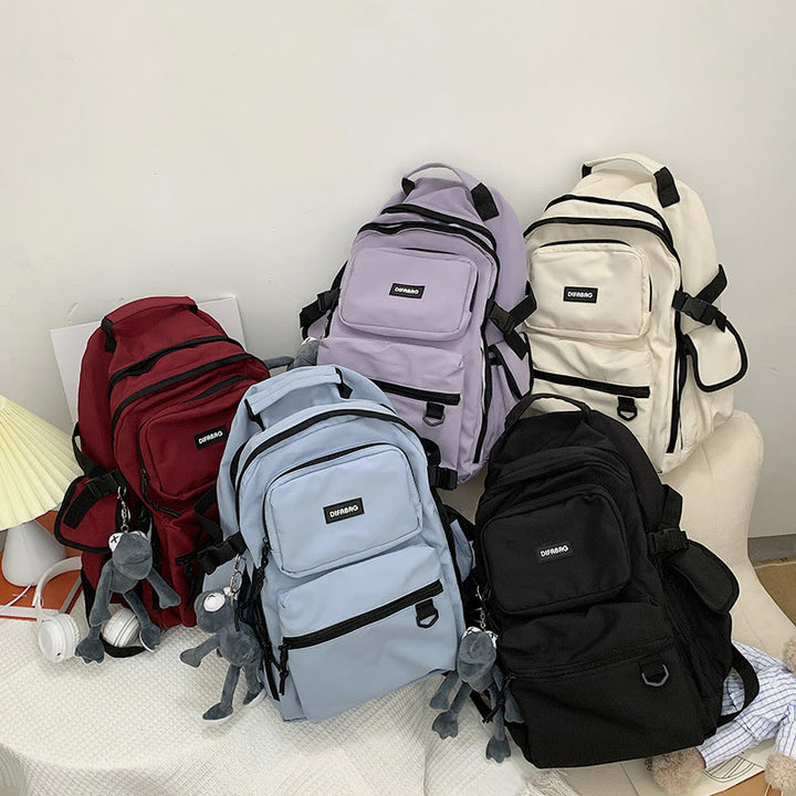 Mehrfachtaschen-Rucksack in einfarbigen Farben für Reisen und Schule für Teenager