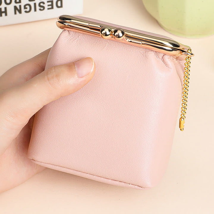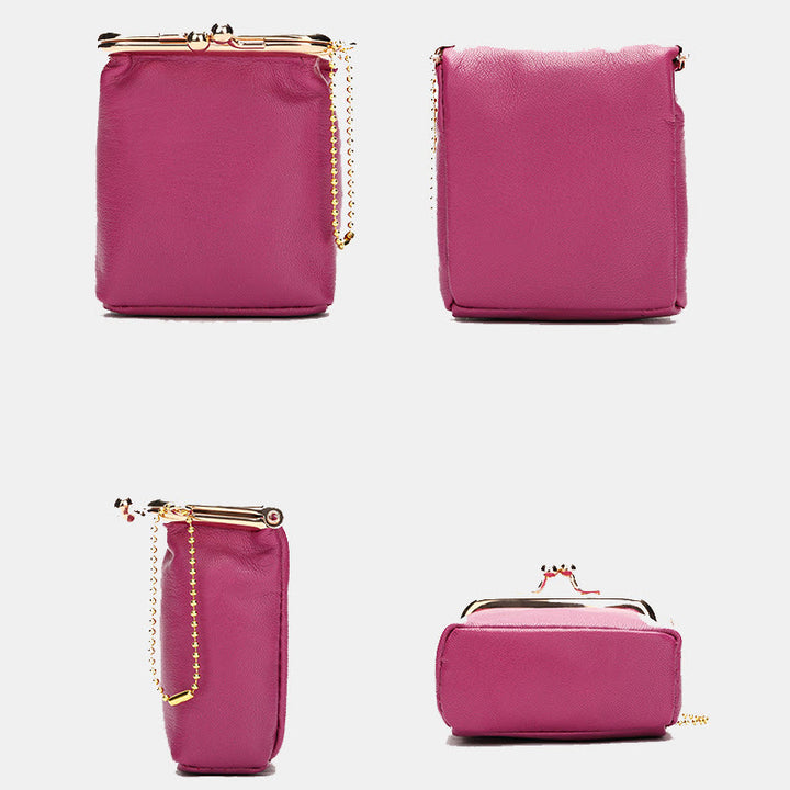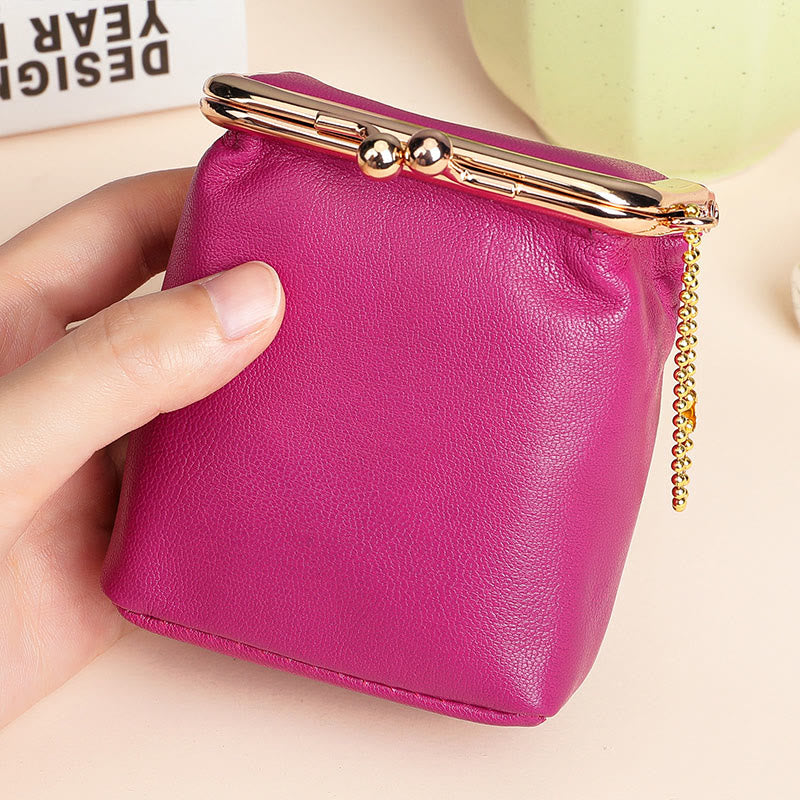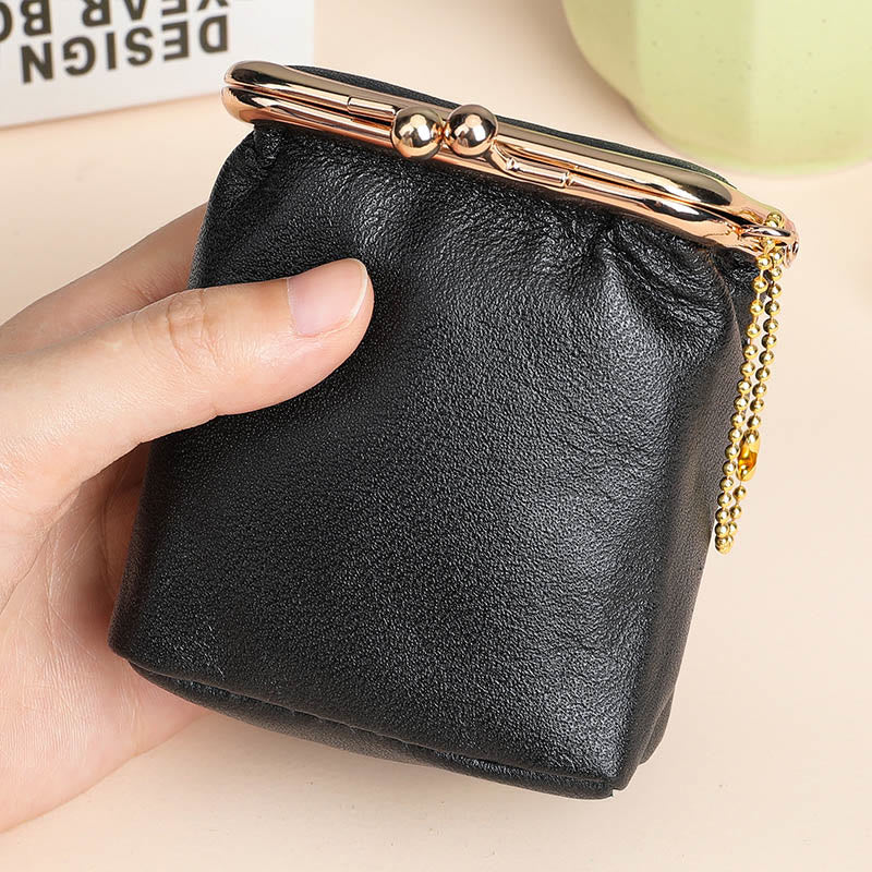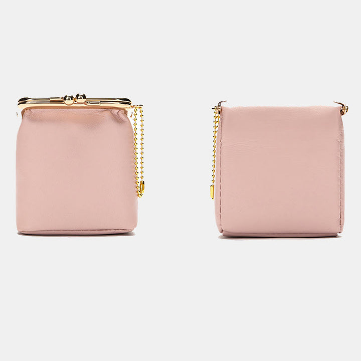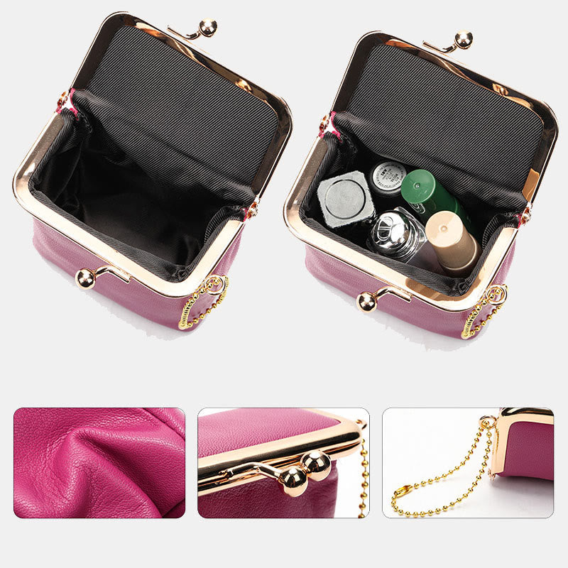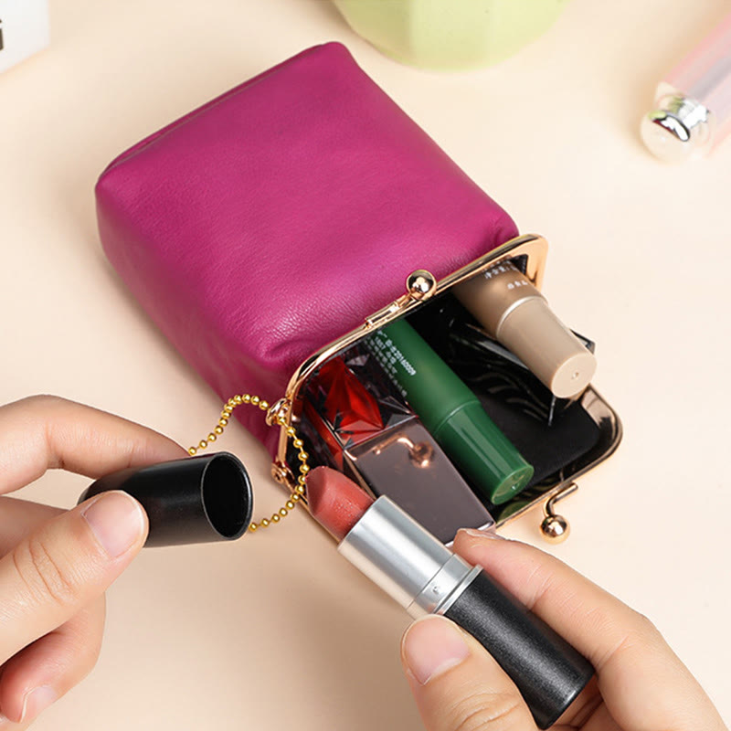 Mini-Aufbewahrungstasche aus echtem Leder mit Kussverschluss