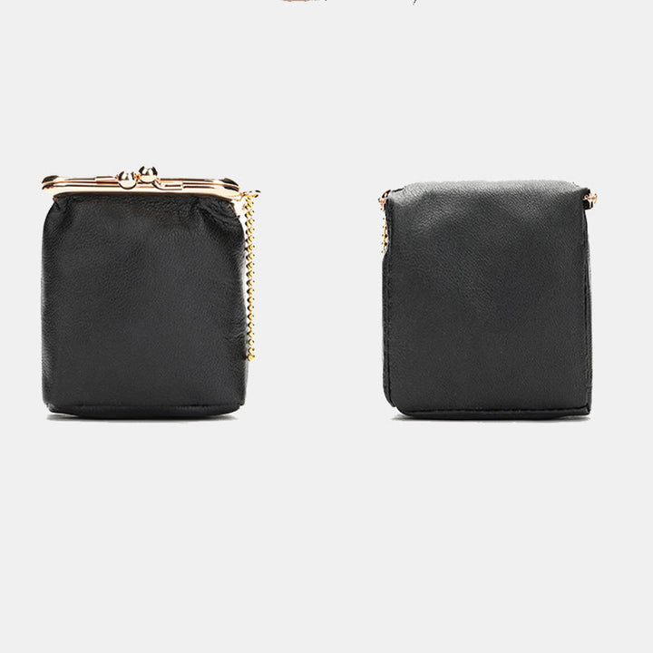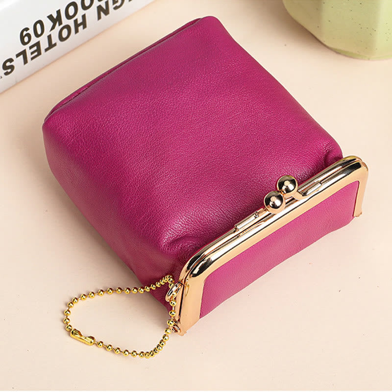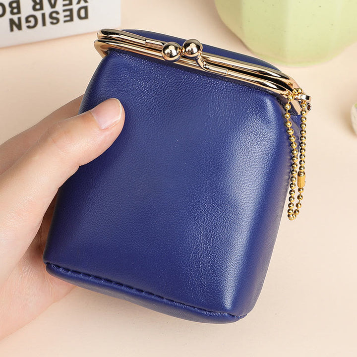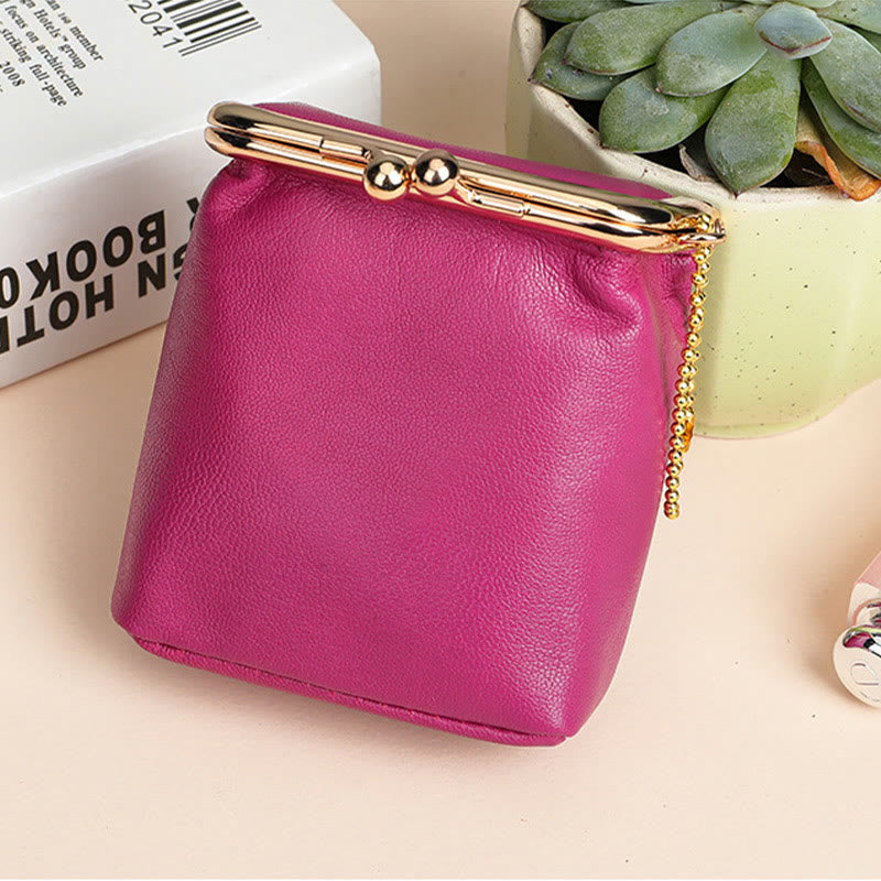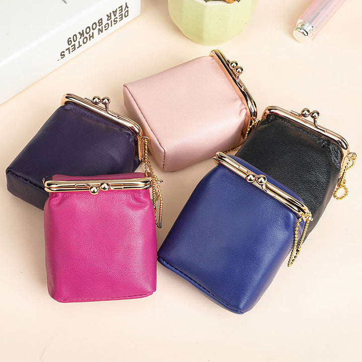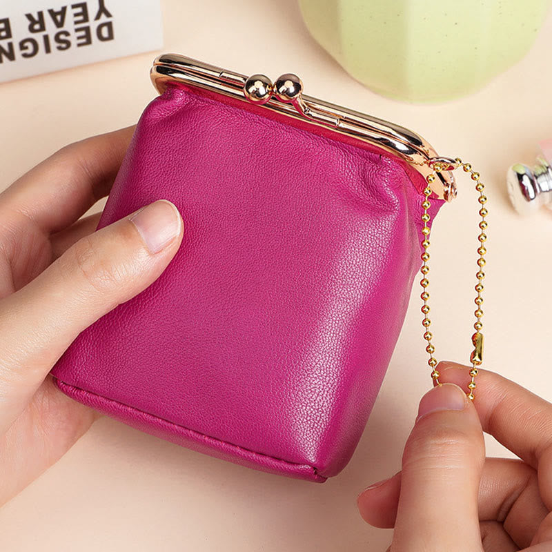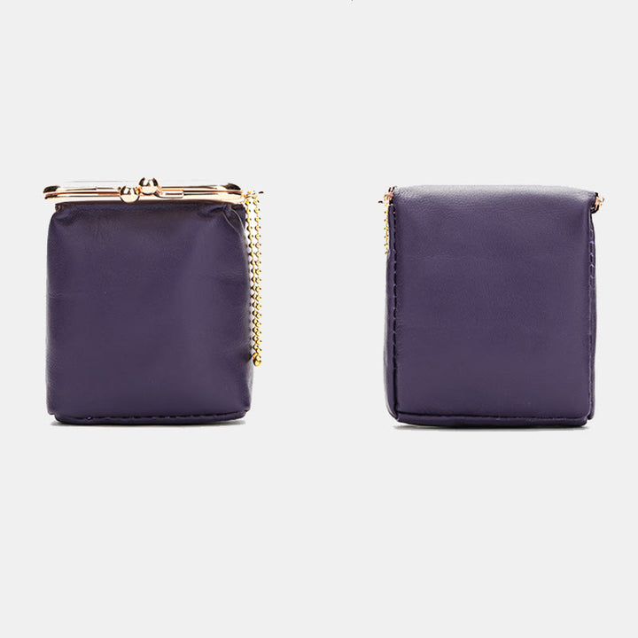 Mini-Aufbewahrungstasche aus echtem Leder mit Kussverschluss