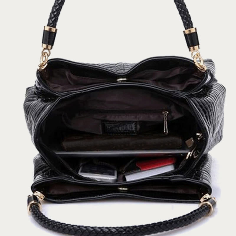 Minimalistische Damen-Tasche mit Henkel und Krokodilmuster aus veganem Leder