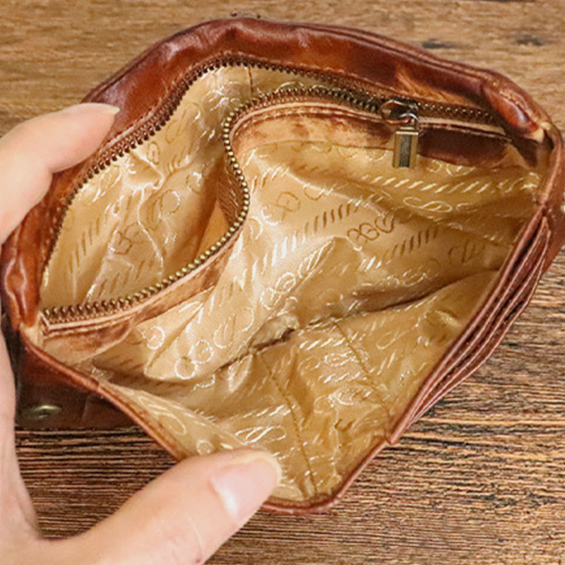 Pflanzlich gegerbtes Leder Geldbörse Damen Herren Retro Vertikale Multifunktionale
