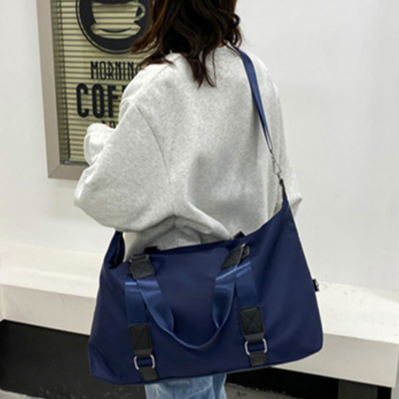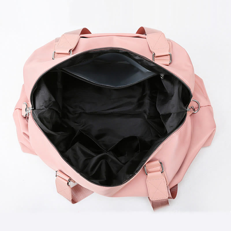 Interne Struktur: 1 Haupttasche, 1 Trenntasche für Trocken- und Nasswäsche, 2 aufgesetzte Innentaschen, 1 Gesäßtasche