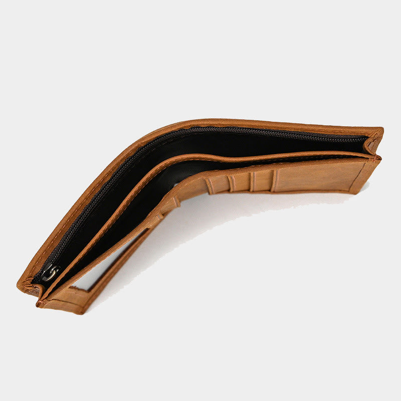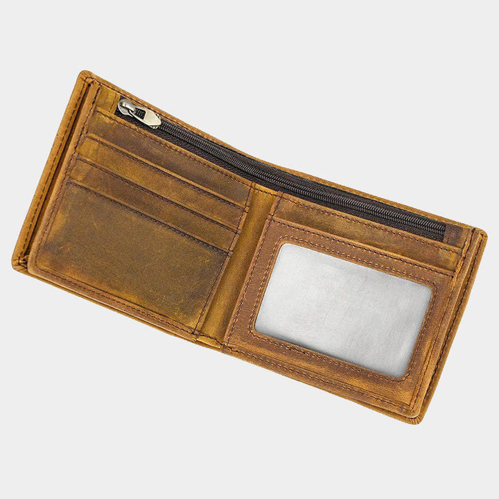 Retro-Geldbörse aus echtem Leder für Herren mit Reißverschlussfach