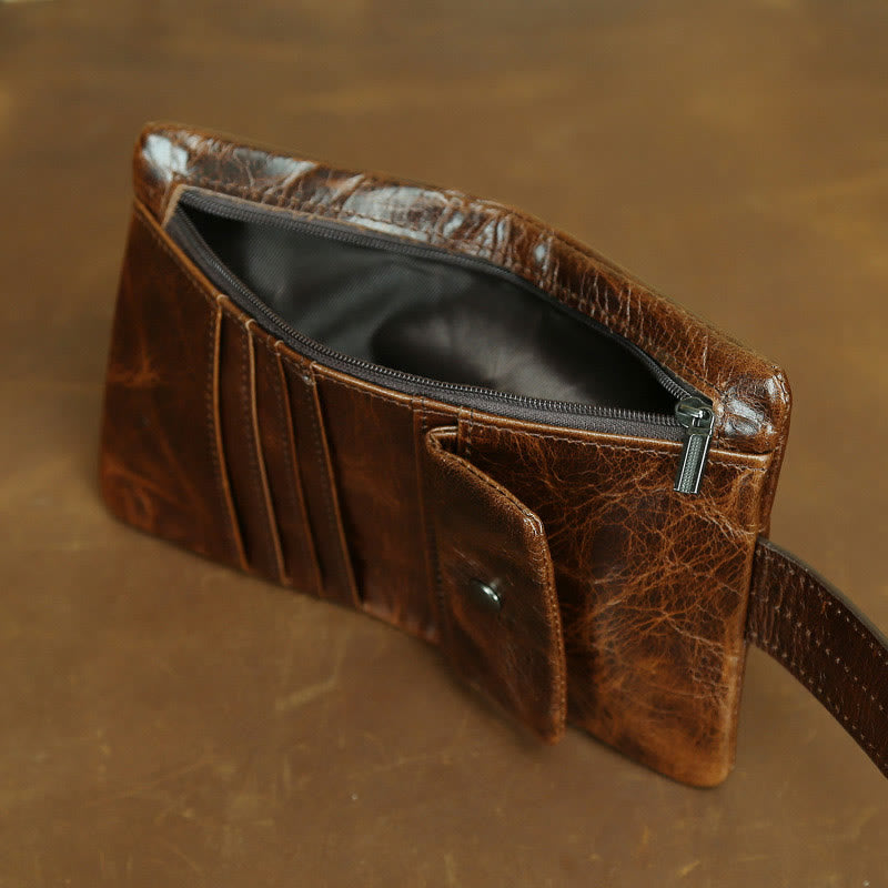 Retro-Geldbörse aus echtem Leder, weiches Ölwachsleder