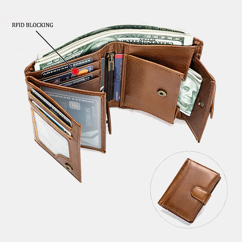 Retro-Ledergeldbörse mit RFID-Blockierung, dreifach faltbare Geldbörse aus Rindsleder