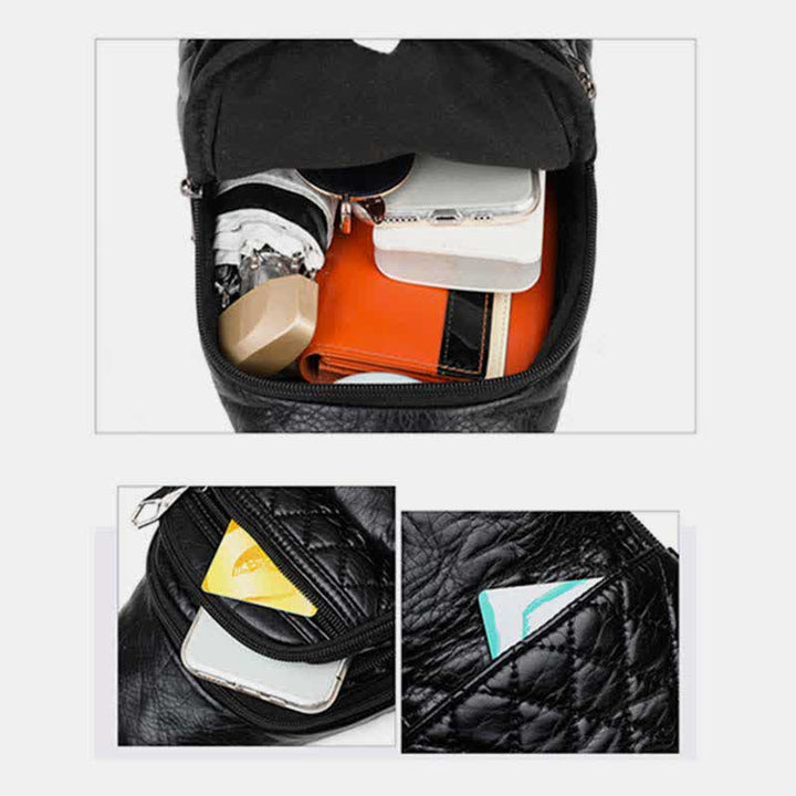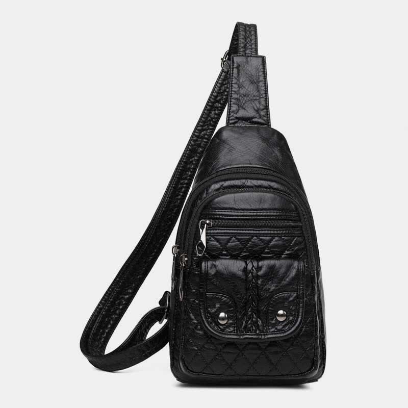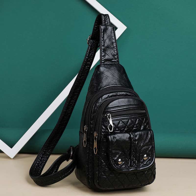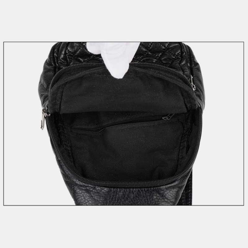 Interne Struktur: 1 Haupttasche, 1 Innentasche mit Reißverschluss, 3 Vordertaschen, 1 Gesäßtasche