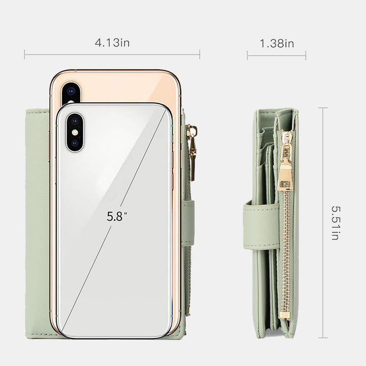 RFID-blockierende dreifach faltbare Ledergeldbörse für Damen mit Münzfach mit Reißverschluss