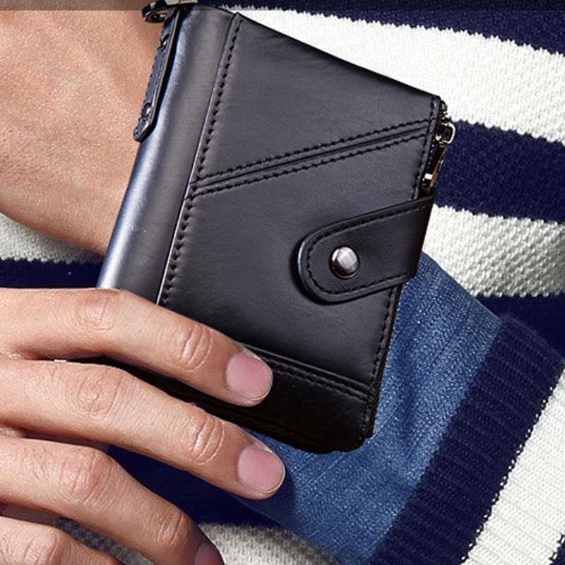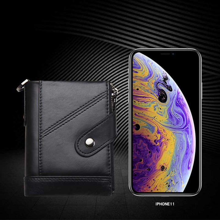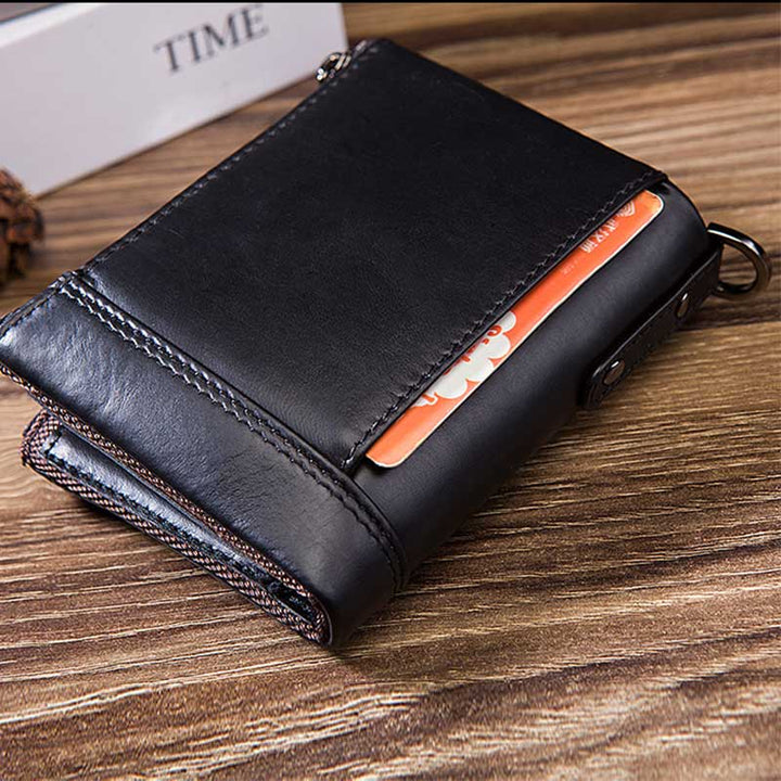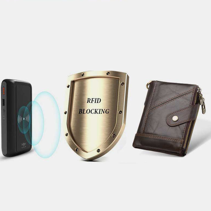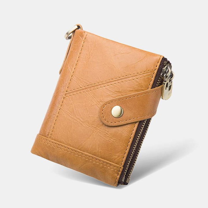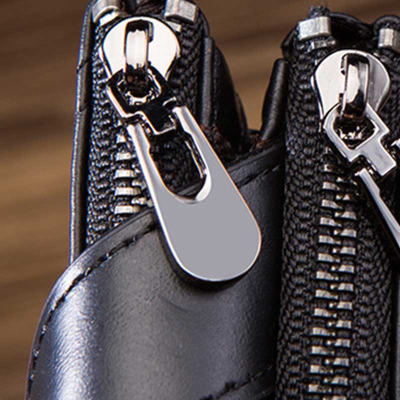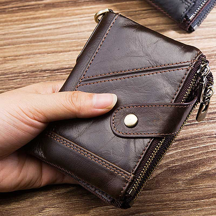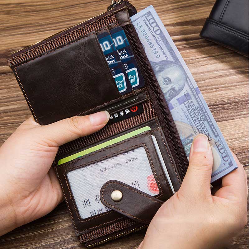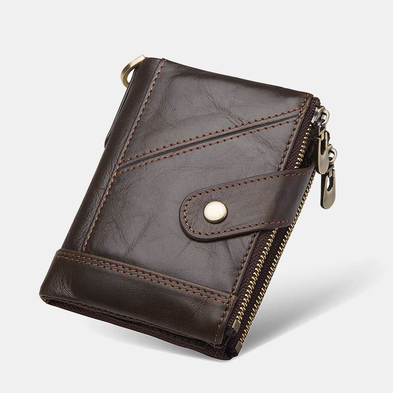 RFID-blockierende Retro-Geldbörse aus echtem Leder mit Doppelreißverschluss