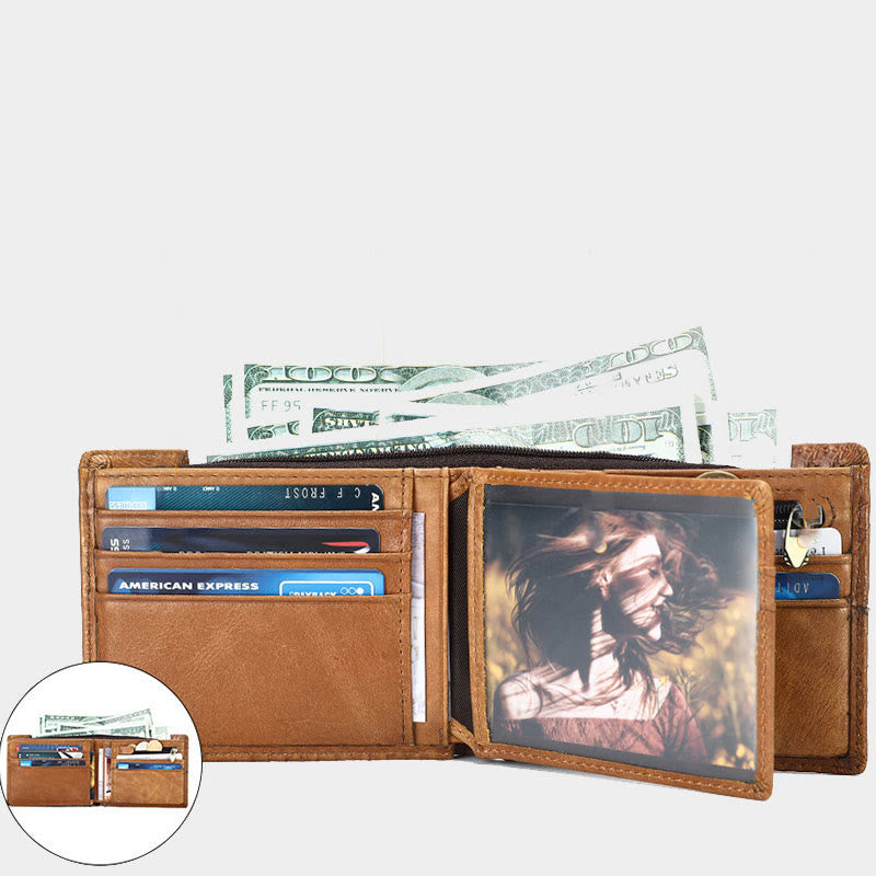Interne Struktur: 14 Kartensteckplätze, 1 Fotosteckplatz, 1 Münzfach mit Reißverschluss, 2 Bargeldfächer, 1 Reißverschlussfach