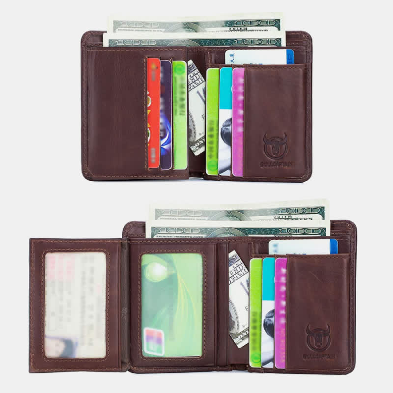 ✅ Zweifach gefaltete Geldbörse für Herren aus echtem Leder: Jede Bullcaptain-Geldbörse für Herren besteht aus hochwertigem echtem Rindsleder mit Stofffutter, um Sie zufriedenzustellen, die Ledergeldbörsen für Herren lieben.