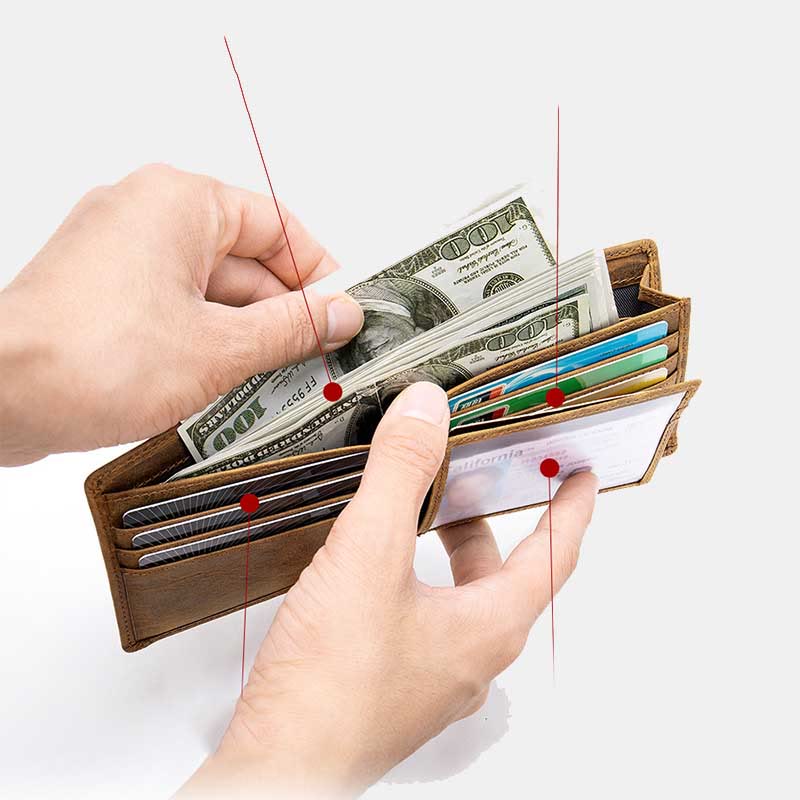 Schlanke dreifach gefaltete Geldbörse für Herren mit RFID-Blockierung und Ausweisfenster