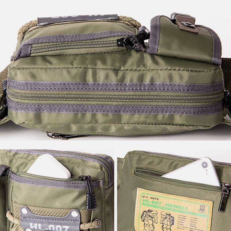 Innenaufteilung: 1 Haupttasche, 2 Fronttaschen, 1 Gesäßtasche