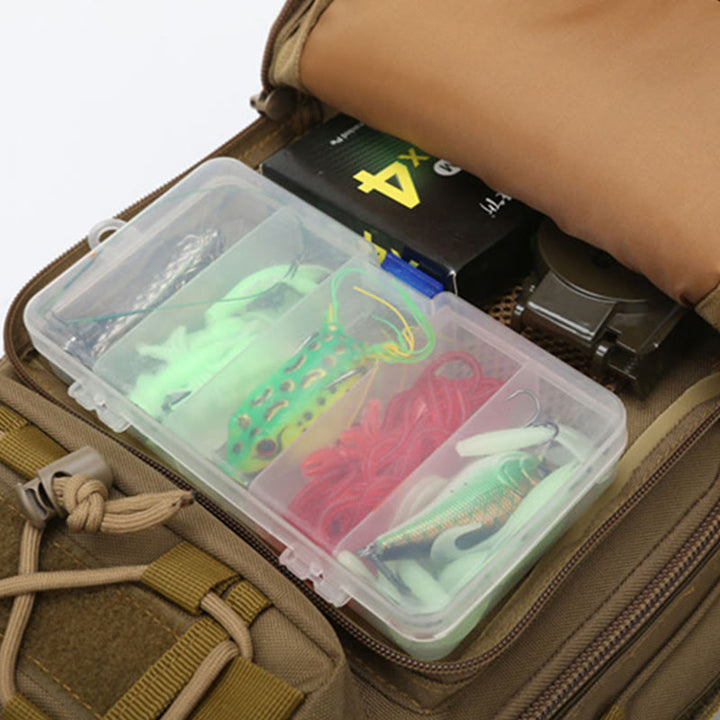 Innenaufteilung: 1 Hauptfach, 2 Innenfächer, 1 aufgesetzte Innentasche, 2 Fronttaschen