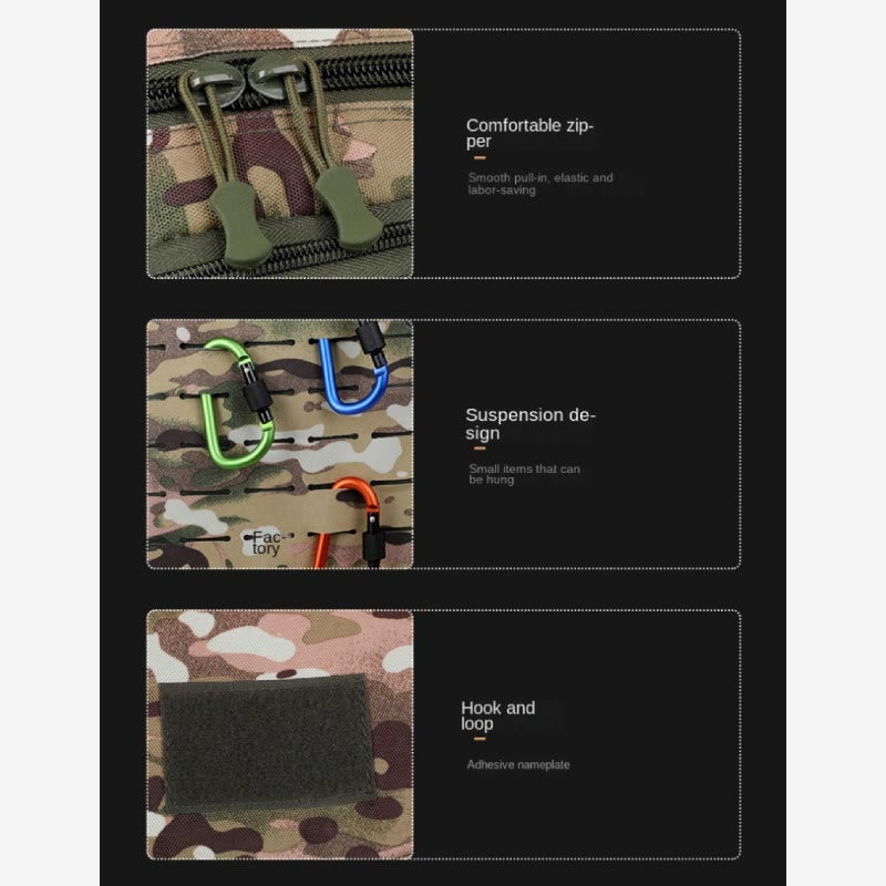 Interne Struktur: 2 Haupttaschen, 2 Innenfächer, 1 Innentasche mit Reißverschluss, 2 Stiftfächer, 2 Seitentaschen, 1 Vordertasche