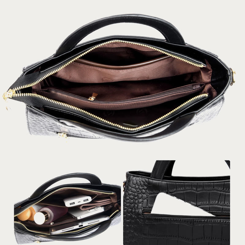 Umhängetasche aus Kunstleder mit Krokodilmuster und drei Fächern