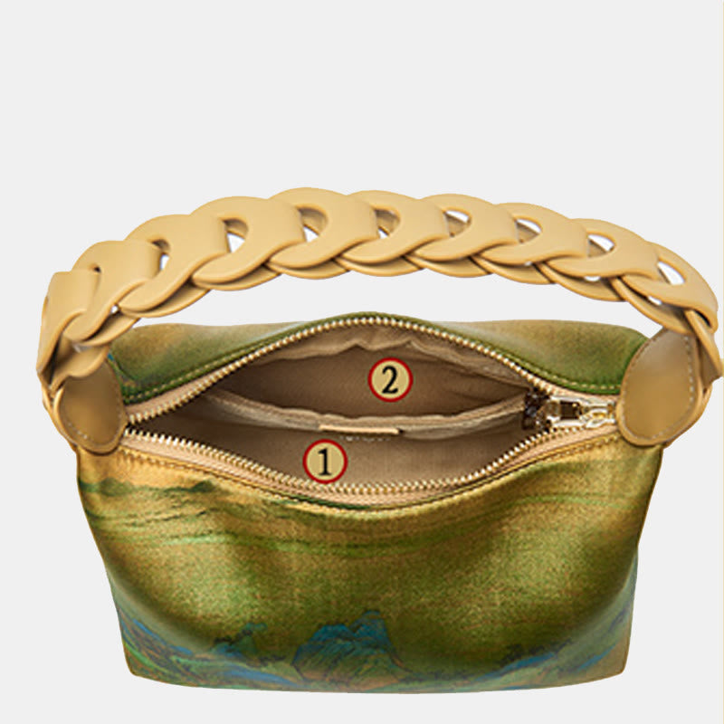 „Tausend Li Flüsse und Berge“ ist ein berühmtes chinesisches Landschaftsgemälde, das dem Künstler Wang Ximeng aus der Song-Dynastie zugeschrieben wird. Es wurde fertiggestellt, als Wang erst 18 Jahre alt war, etwa im Jahr 1113 n. Chr. Das Gemälde ist bekannt für seine weitreichende Darstellung der Natur, insbesondere der Flüsse, Berge und fernen Horizonte, die sich über eine über 3,35 Meter lange Schriftrolle erstrecken.