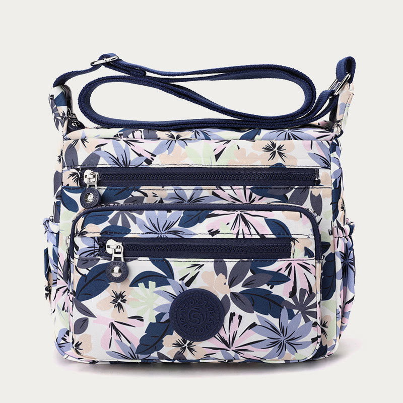 Interne Struktur: 1 Haupttasche, 1 Innentasche mit Reißverschluss, 2 aufgesetzte Innentaschen, 2 Seitentaschen, 3 Vordertaschen, 1 Gesäßtasche