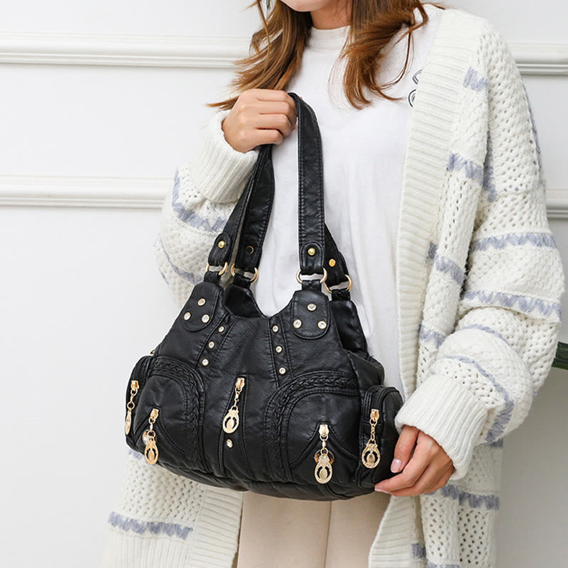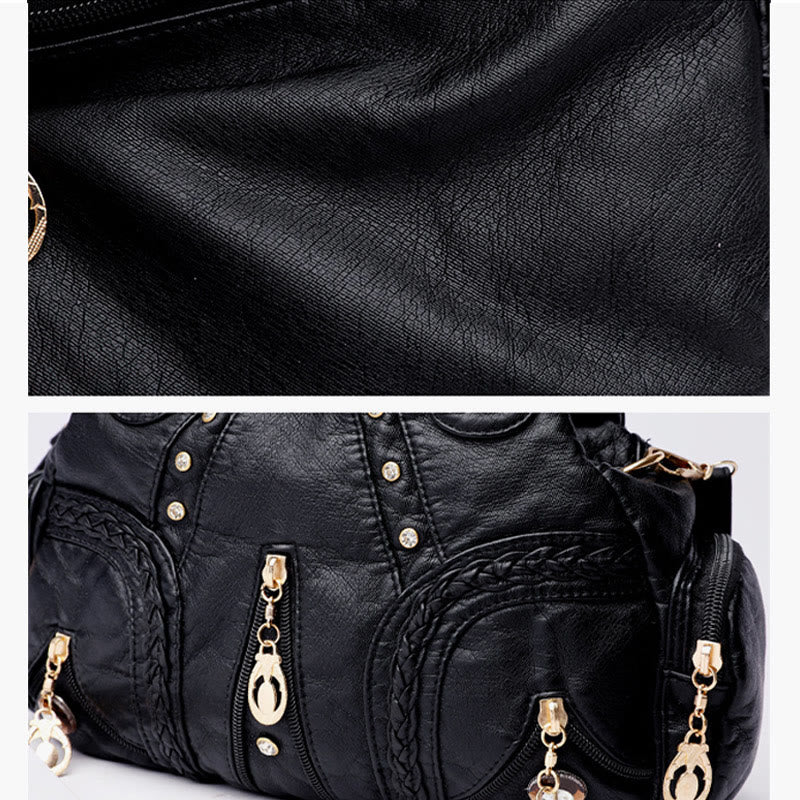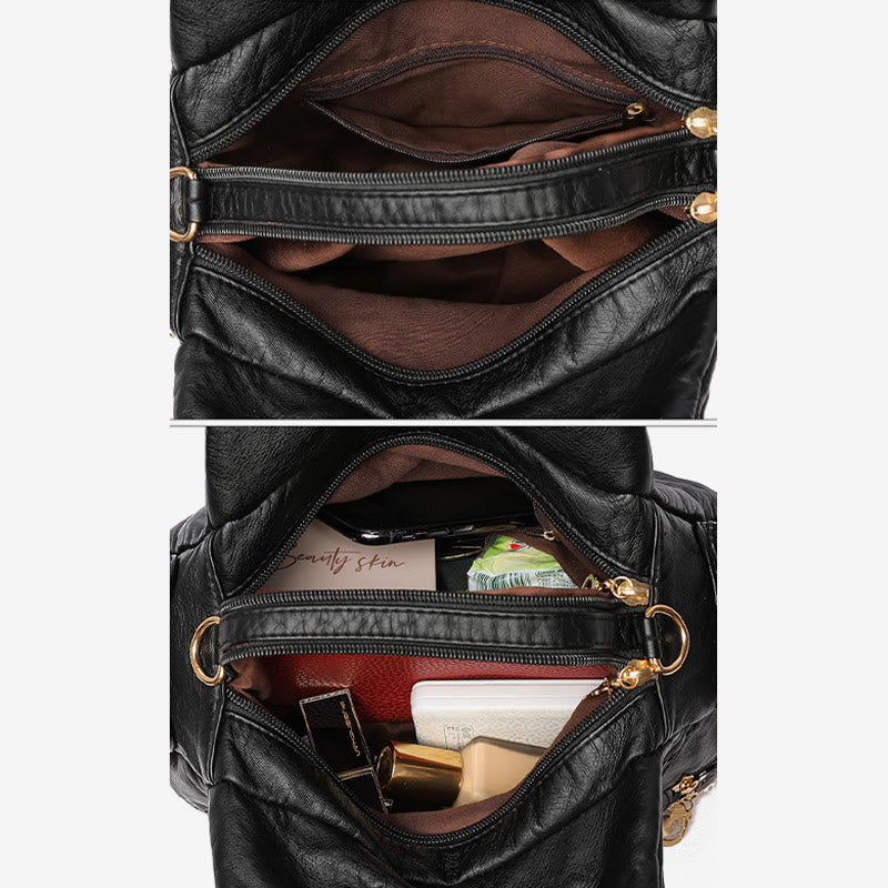 Interne Struktur: 2 Haupttaschen, 1 Innentasche mit Reißverschluss, 2 Seitentaschen, 1 Gesäßtasche