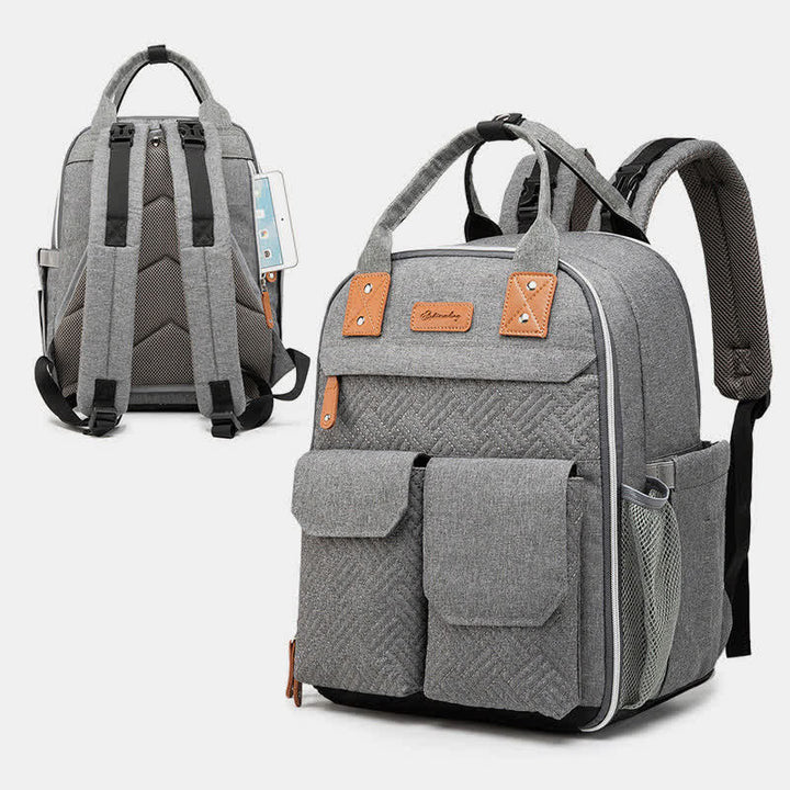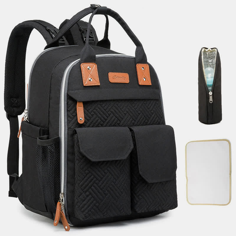 Innenaufteilung: 2 Haupttaschen, 1 aufgesetzte Innentasche, 5 isolierte Taschen, 3 Fronttaschen, 4 Seitentaschen, 1 Gesäßtasche