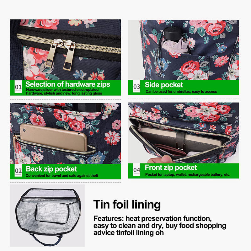 - 🔹【Mehrere Taschen】 Rund um die Tasche befinden sich 4 Taschen, in die Sie Ihren Regenschirm, Ihre Schlüssel, Kopfhörer, Ihre Brieftasche und viele andere Dinge stecken können. Sie können mit nur einem Einkaufswagen zum Lebensmittelgeschäft gehen.