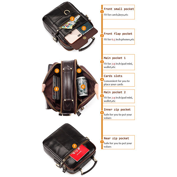 Umhängetasche aus echtem Leder, Vintage-Umhängetasche, Messenger-Handtasche für Herren