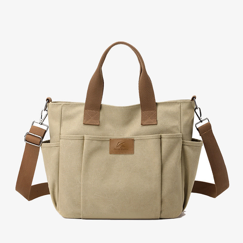 Interne Struktur: 1 Haupttasche, 1 Innentasche mit Reißverschluss, 2 aufgesetzte Innentaschen, 2 Seitentaschen, 2 Vordertaschen