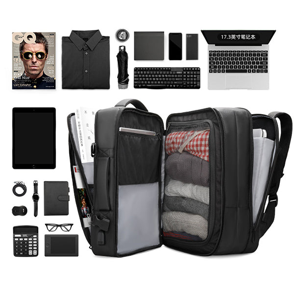 Innenaufteilung: 3 Hauptfächer innen, Reißverschlussfach innen, Innenfach, Laptopfach innen, 2 Seitentaschen, Seitentasche vorne, Reißverschlussfach vorne, Diebstahlschutzfach hinten