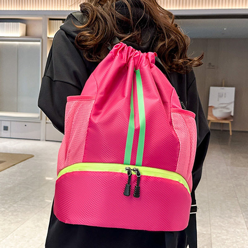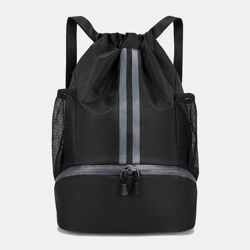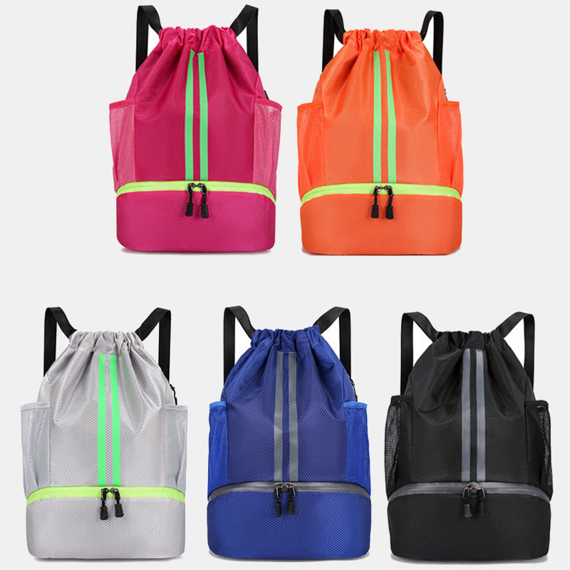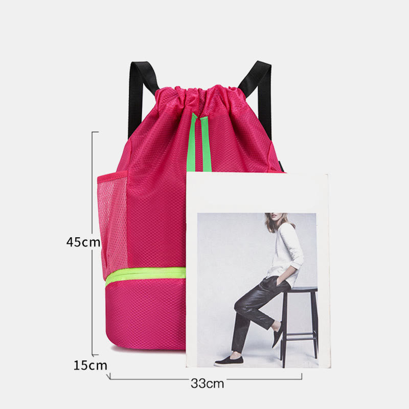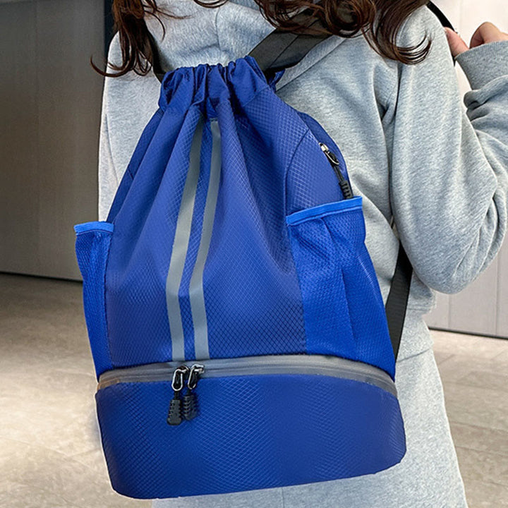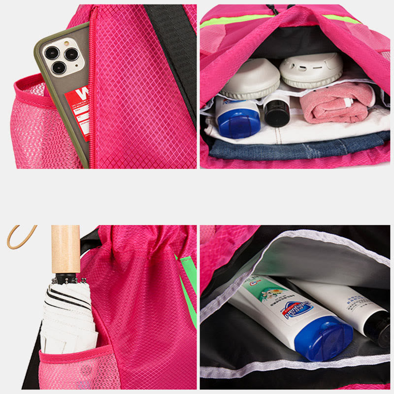 Interne Struktur: 1 Hauptfach, 1 Innenfach für trockene und nasse Trennung, 2 Seitentaschen, 1 Schuhfach unten