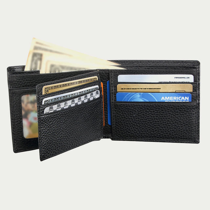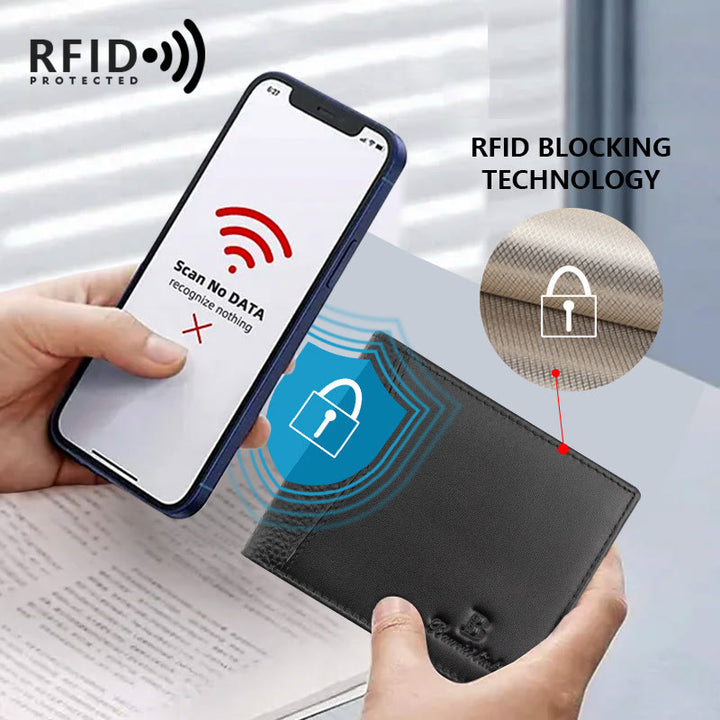 Ledergeldbörse für Männer, Diebstahlschutz, RFID, schwarze Geldbörse