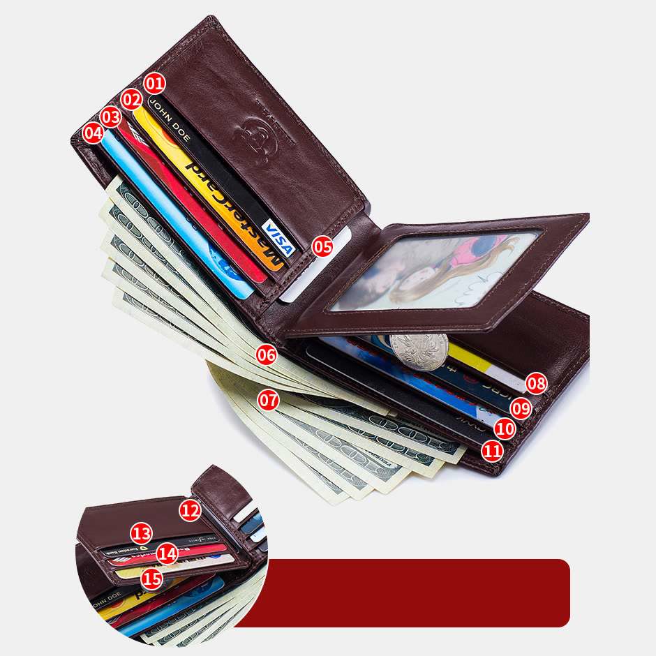 Interne Struktur: Horizontal: 2 Banknotenfächer, 13 Kartenfächer, 1 Fotofenster
