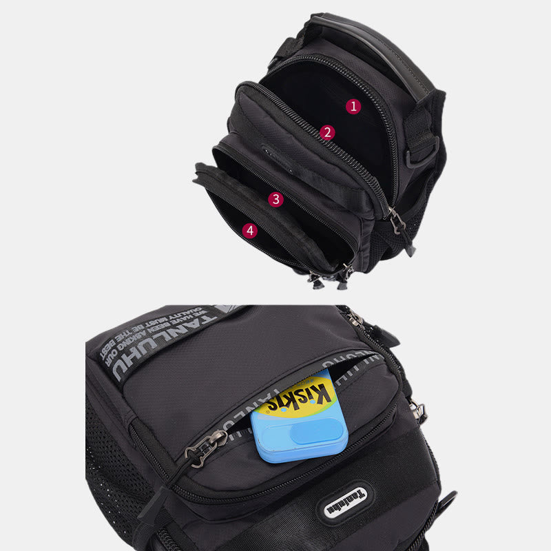Innenaufteilung: 1 Haupttasche, 1 Fronttasche, 2 Seitentaschen