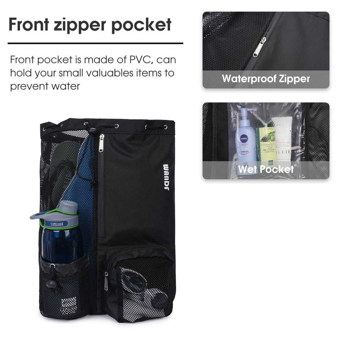 3. Mehrere Taschen – zwei Netztaschen zur Aufbewahrung Ihrer Schwimmbrille, damit diese schnell trocknet und Schimmelbildung verhindert wird.