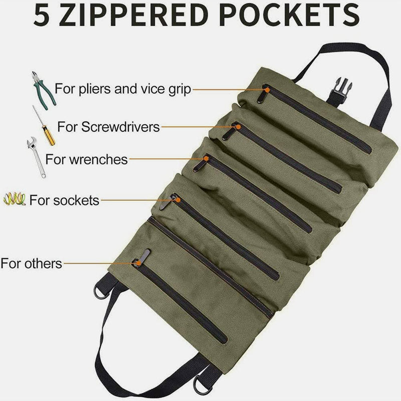 ✅ Bewahren Sie alle Werkzeuge in einer Rolle auf: bietet mit 5 großen Reißverschlusstaschen viel Platz für jede Menge Werkzeuge. Bietet Platz für alle Ihre Schraubenschlüssel und andere Werkzeugen wie kleine Zangen, Schraubendreher, Inbusschlüssel, Stecknüsse und mehr!